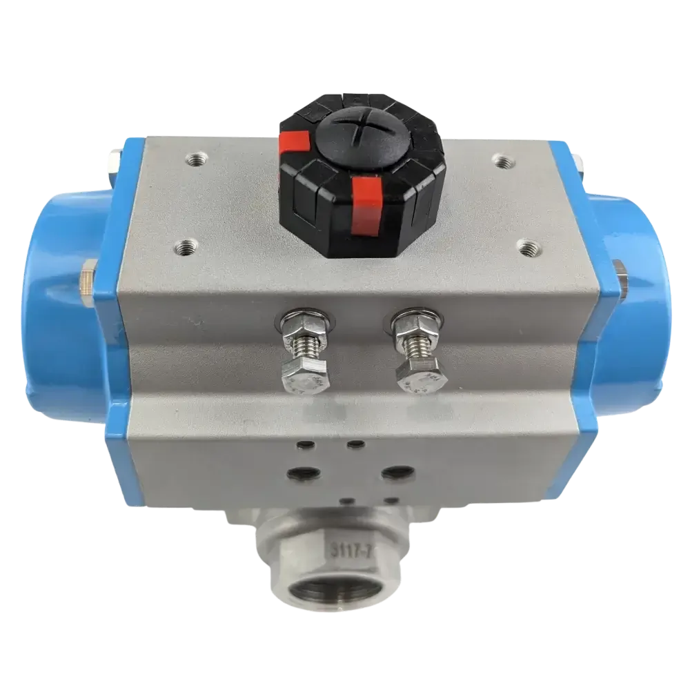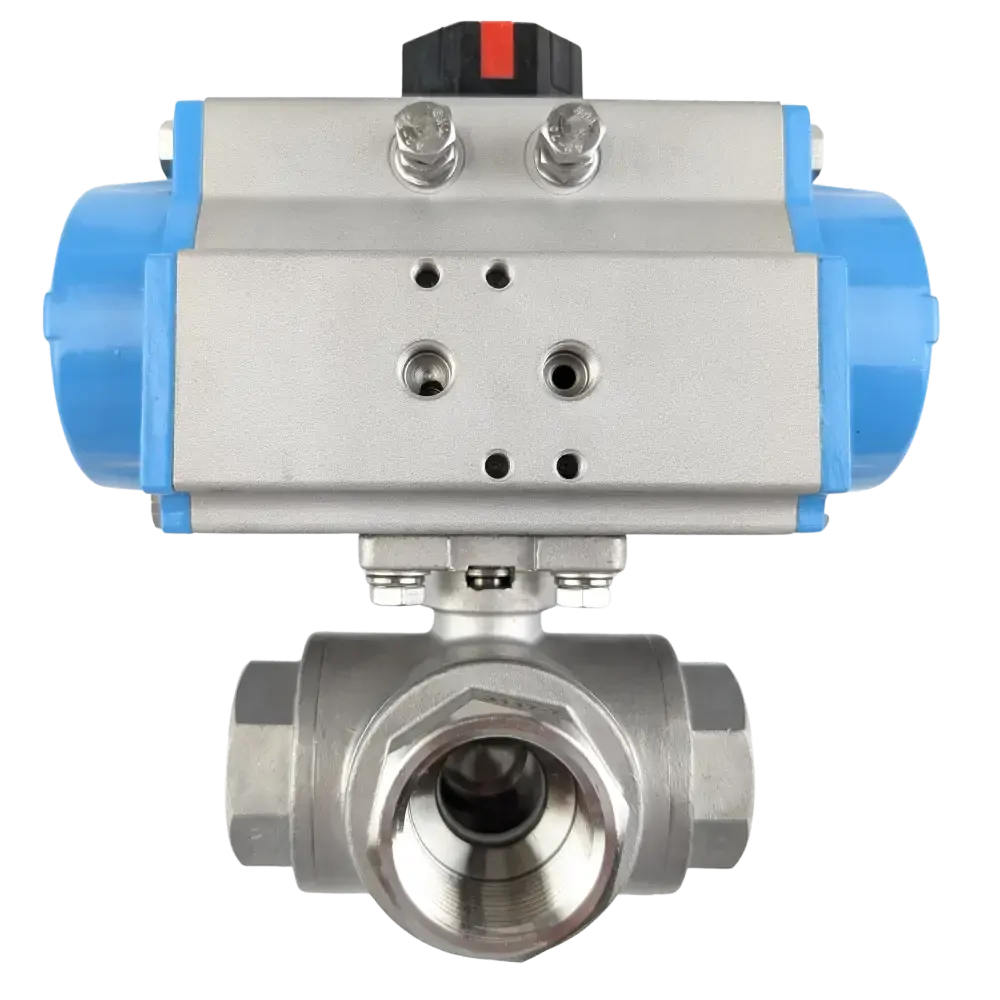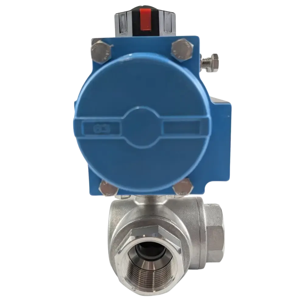 • 3 way 316 Stainless Steel Ball Valve with Double Acting Pneumatic Actuator