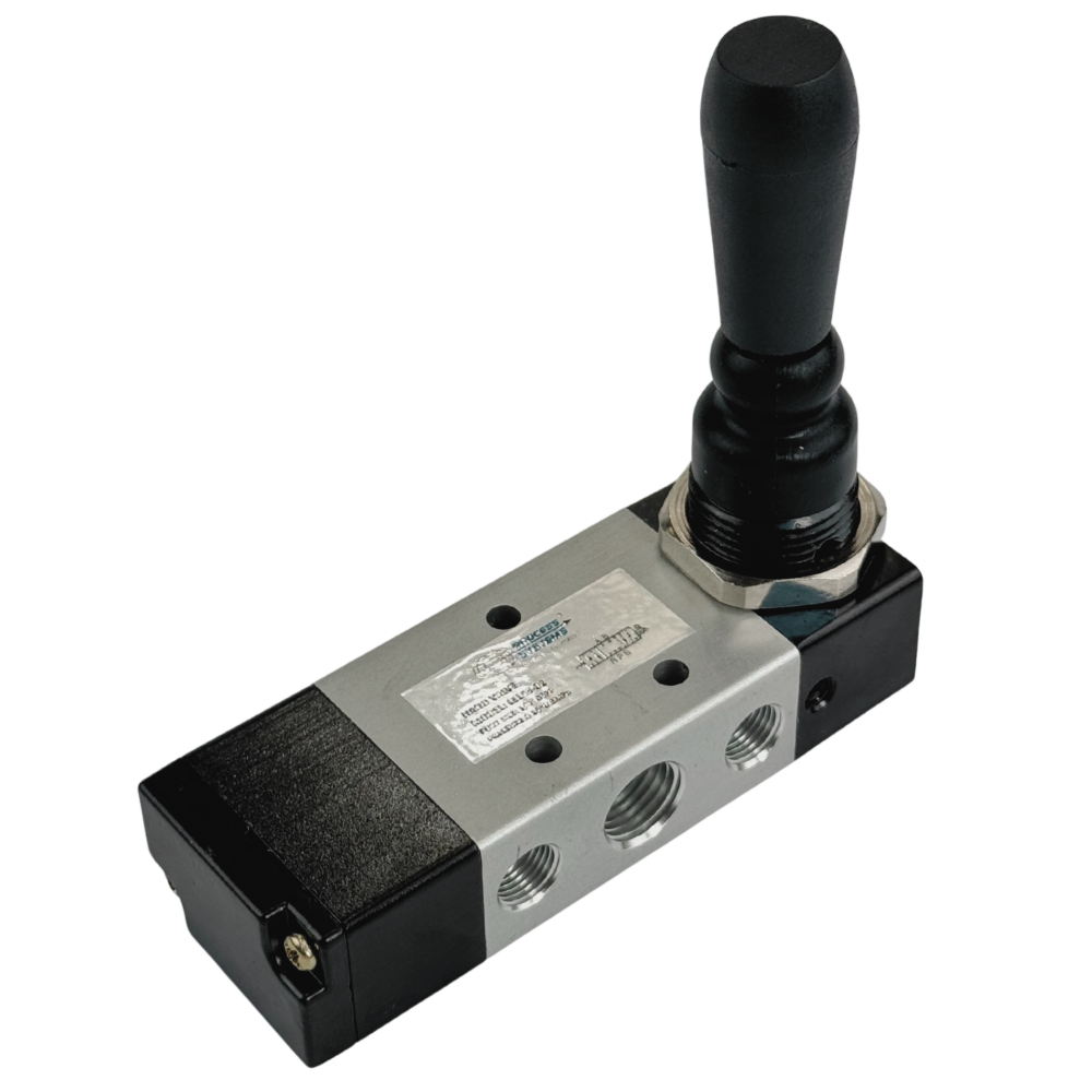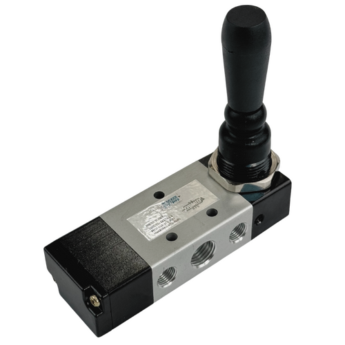 This 5 way 3 position rotary lever valve allows the user to get an "inching" function over an air ram where they can stop it anywhere during its stroke (also known as a creep function). The lever has 3 positions; one way it will extend the ram or actuator, the middle it will close all ports to freeze it where it is and the other end it will retract it.