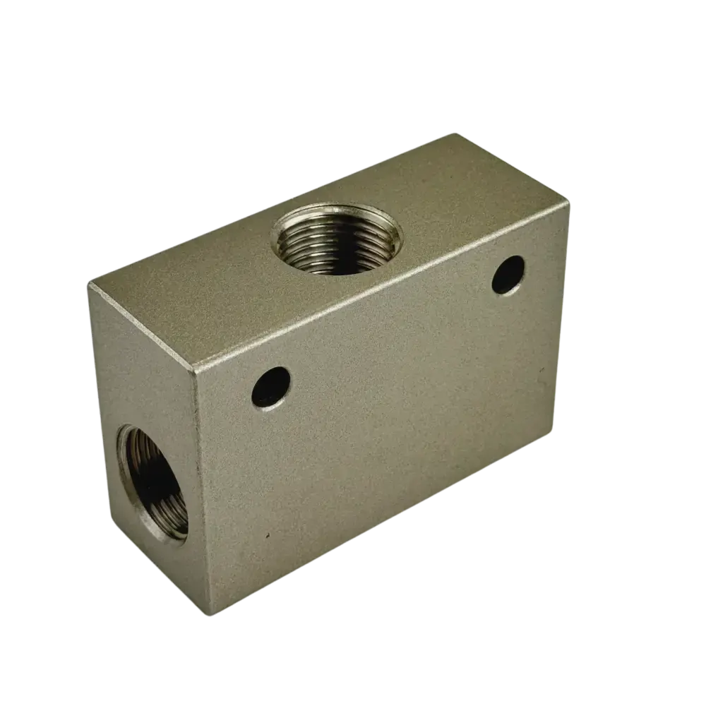 This aluminium shuttle valve which is also called an 'or valve' (either this inlet 'or' that inlet).Two inlets with one outlet where only one inlet can be active. Used in applications where there are two pressure supplies and only one will be working at a time.