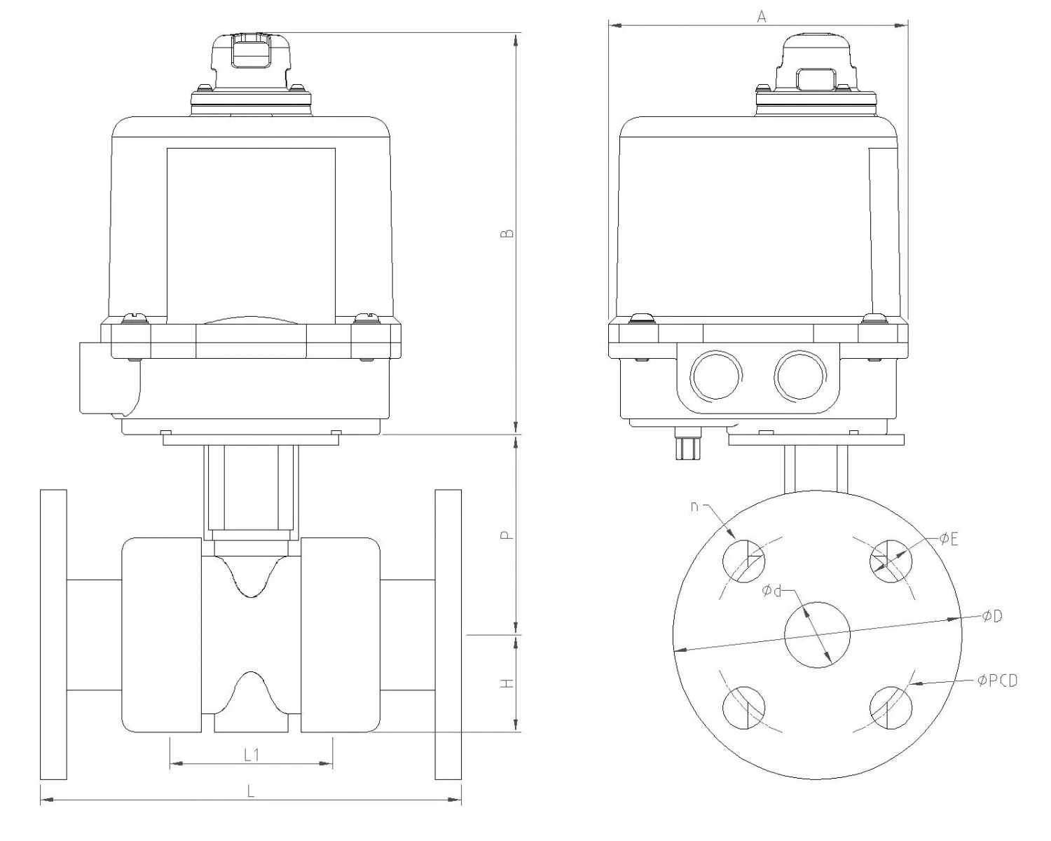Model Size Actuator ⌀d ⌀PCD ⌀D L L1 H2 n ⌀E P A B