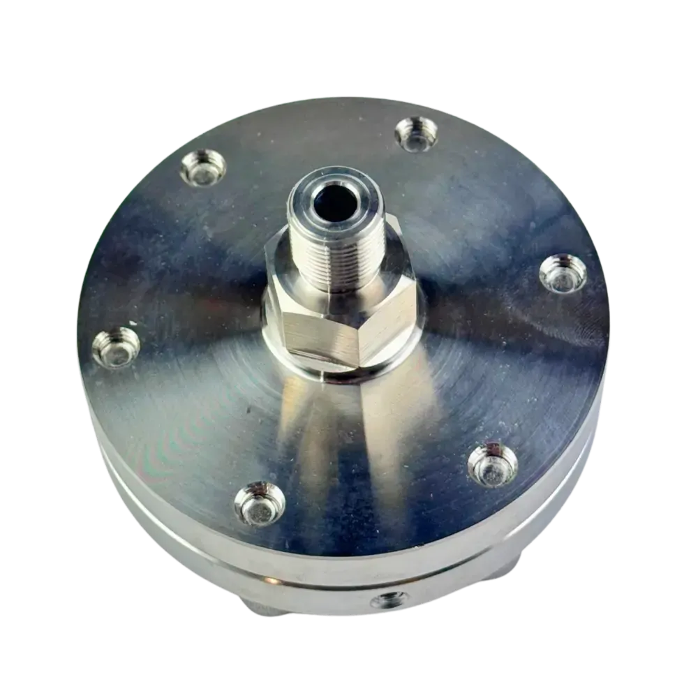 Inc GSTGauge Diaphragm seals are used for media isolation meaning it enables the gauge media to be isolated from the line media but still give an accurate pressure reading. It does this by having a diaphragm in between the line media and the gauge media which flexes with pressure fluctaution to enable it to be transmitted to the guage. It also enables the gauge to do higher media temperatures as it is isolated. The gauge side should be filled with glycerine or silicone oil taking care to bleed out any air bubbles. The diaphragm itself is actaully a stainless steel bellow with a PTFE body o-ring. Ideal for corrosive, contaminated, hot or viscous medias. ** Gauge Diaphragm Supplied Dry - No Fluid **
