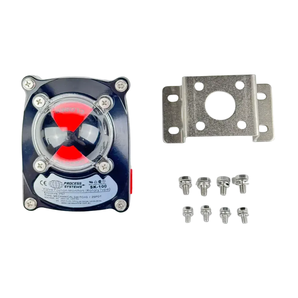 Inc GSTThis limit switch box is designed to sit on the top of pneumatic actuators to give an end of stroke (open/close) positional feedback. They will utilise the namur mount standard on the top of all common pneumatic actuators (both double acting and spring return). It features a visual indicator through a raised dome, two conduit entry points and two mechanical micro switches.