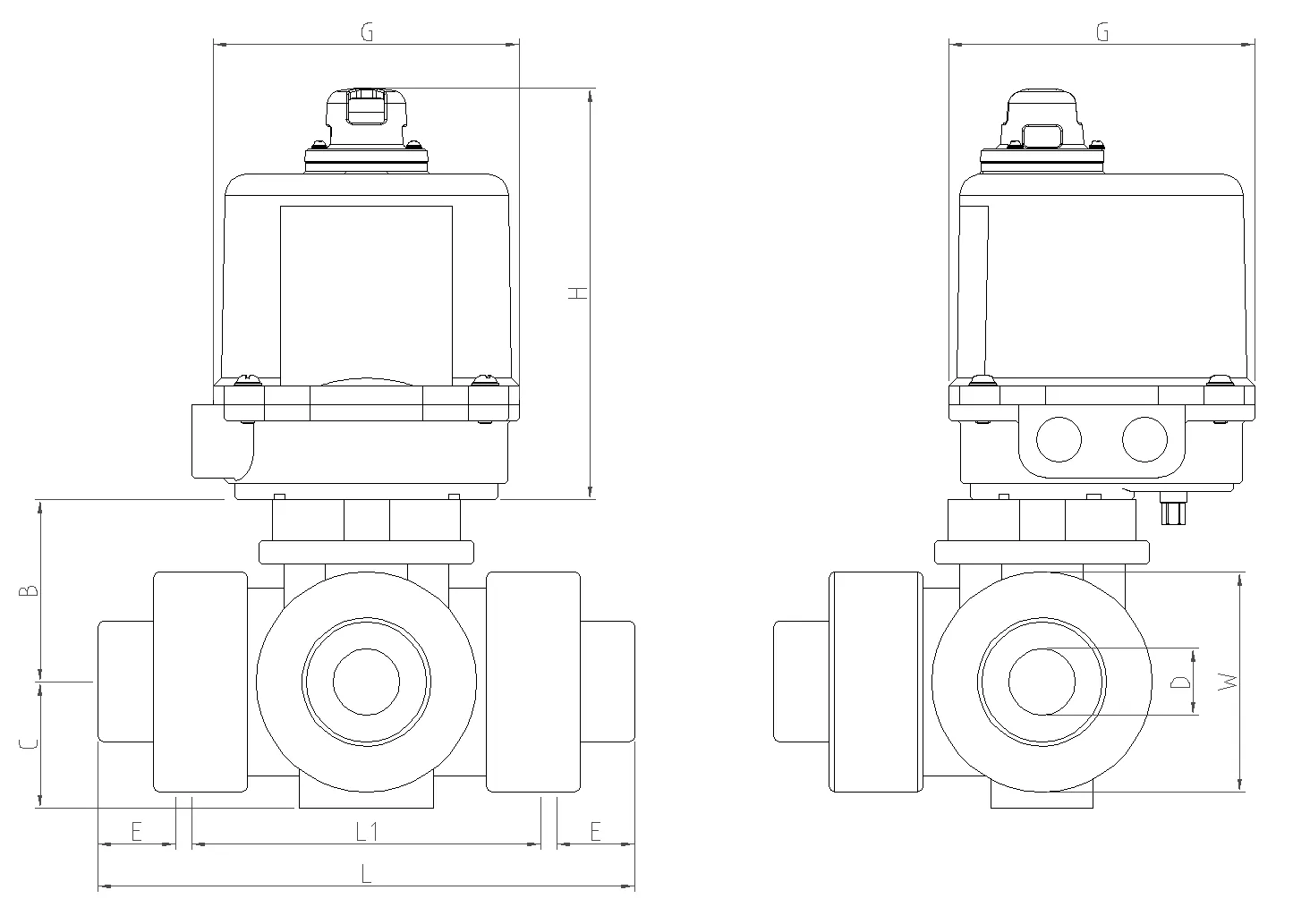 UV Stabalised 3 Way Electric PVC Ball Valve