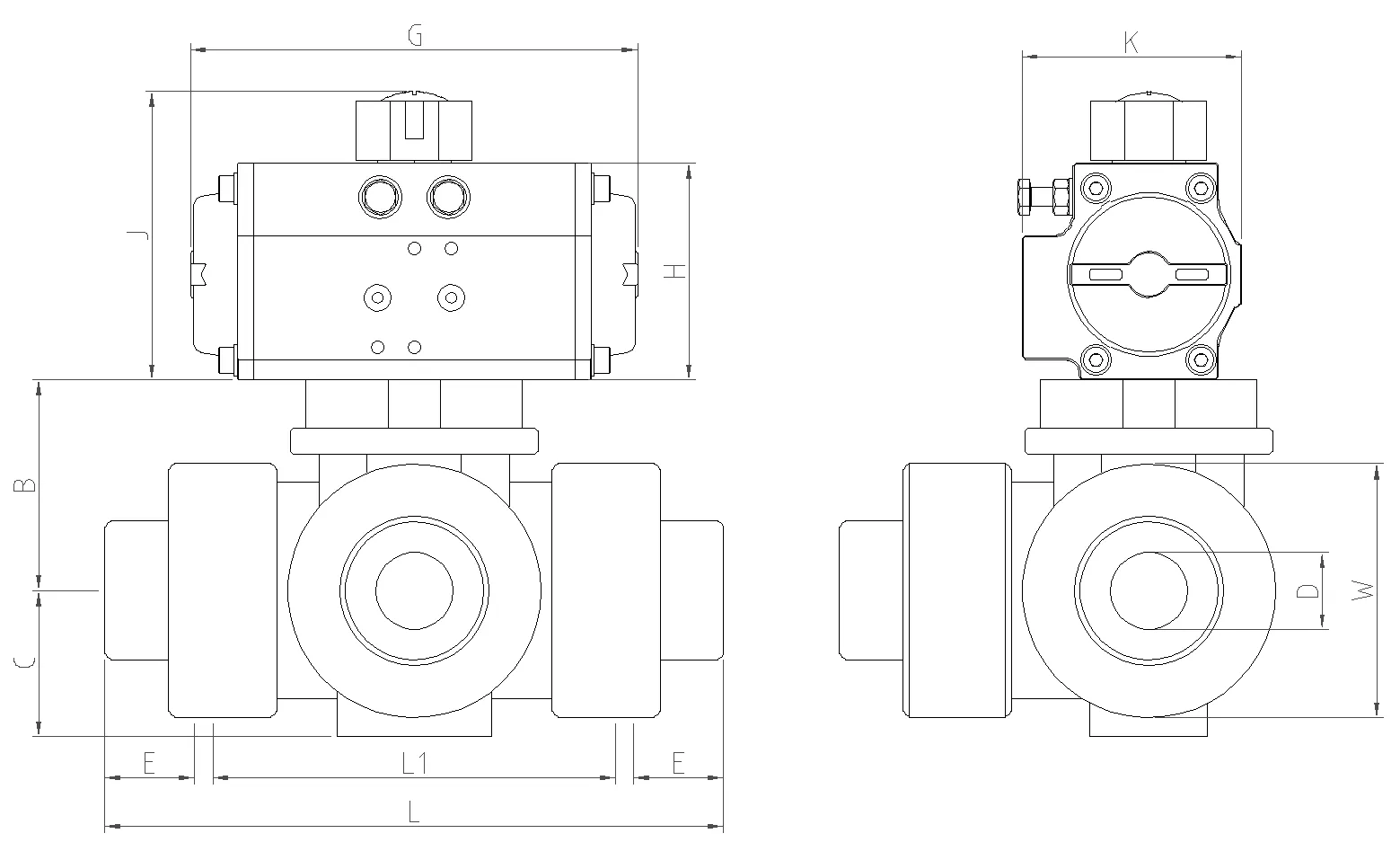 • Three way UV Stabalised Spring Return Pneumatic PVC Ball Valve